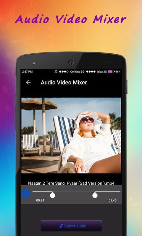 Mix audio with video is an effective video editor and audio mixer, which can be used to edit a video by adding a background music of your choice. This video mixer or music editor supports different audio and video formats, to mix an audio with a video , also you can cut video with trimmer and slow motion video , fast video .
