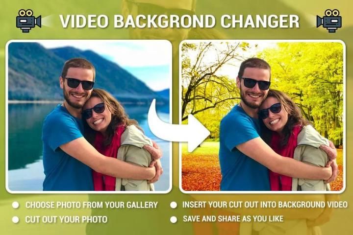 Aplikasi Video Background Changer membantu mengganti foto Anda dengan latar belakang yang membosankan dengan klip video.