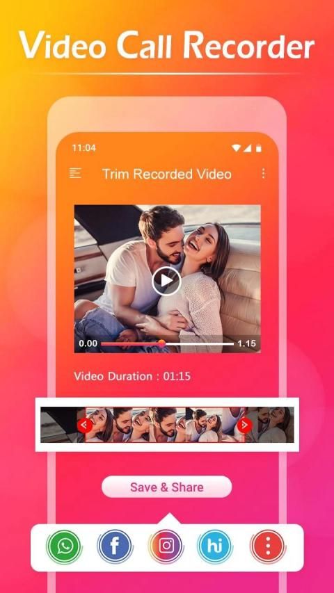 Video Call Recorder -Auto Call Recorder app akan memungkinkan Anda melakukan percakapan yang indah Video Call melemparkan video dengan menyediakan setiap fitur yang Anda butuhkan dalam desain pengalaman pengguna yang sederhana dan elegan; Anda dapat memotong video yang diambil dengan menandai titik awal dan akhir.