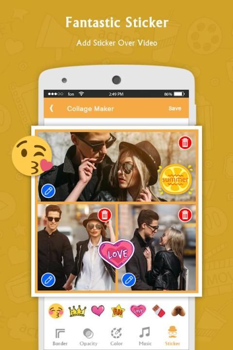Mengatur Bingkai Outer Pada tata letak Anda Video Collage Dan Tambah Stiker Berbeda Juga