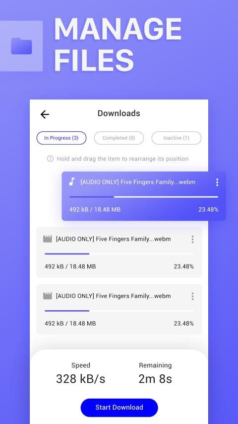 Cari video favorit Anda, aplikasi unduh video HD akan membantu Anda mengunduh video dari internet ke ponsel Anda dengan mudah dan cepat.