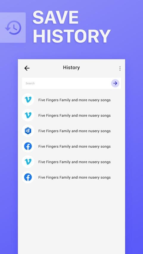 Search for your favorite videos, the download video HD app will help you download videos from internet to your phone easily and quickly.