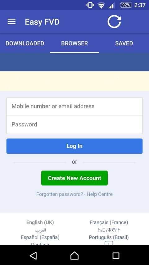 cara sederhana untuk pengunduh video untuk Facebook, aplikasi ini memungkinkan Anda untuk melihat umpan dan mengunduh video umpan melalui akun Facebook Anda, halaman Anda, grup dan dinding teman Anda menggunakan browser bawaan yang memberi Anda pilihan untuk memilih video yang Anda inginkan untuk mengunduh dan menyimpannya di telepon Anda.