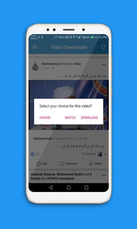 This video downloader free allows you to browse your news feed and your friends/pages walls to select the video you want to download and save them. In this video downloader you can watch it later and share it with your friends. This is best downloader without any hustle and with simple steps of clicking and download its best video downloader for android.