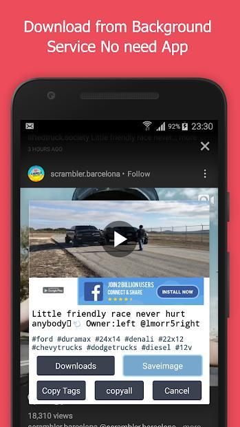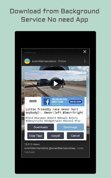 Dengan InSaver Instagram & Facebook Video Downloader, Anda dapat Mengunduh Video & foto dan menyalin tag ...