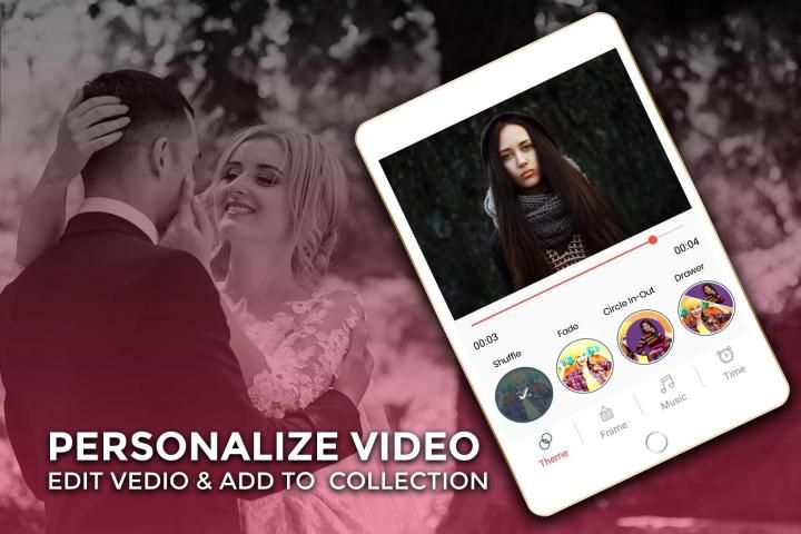 is the easiest way to create music videos. All you need to do to create great videos are choosing photos, adding music, setting effects and time, saving videos or slideshows and then sharing them with your friends.