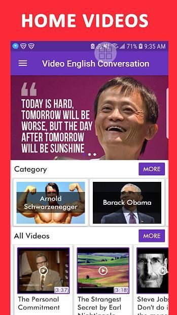 Video English Conversation adalah aplikasi untuk belajar bahasa Inggris melalui video dengan lebih dari 1000 video dan 20 kategori yang akan membantu Anda meningkatkan bahasa Inggris Anda setiap hari