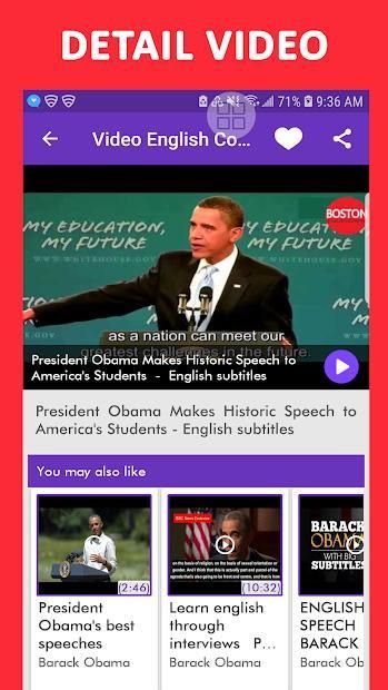Video English Conversation one of the most life-changing app that exists, and a lot of smart people are using it to revolutionize their English. It has subtitle options for English, so you can share it with your friends and family.