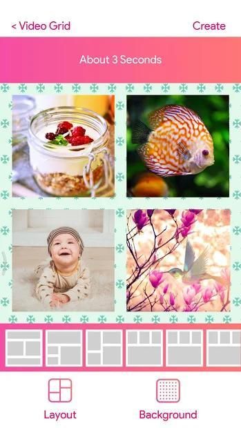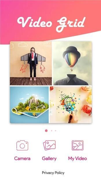 Video Grid memungkinkan Anda untuk sekering video dan memberikan layout kreatif bervariasi untuk membuat satu kolase menakjubkan