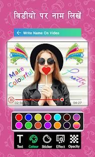VIdeo Pe Name Likhe App offers a very easy and intuitive platform to watermark your videos with text And Image of your choice. Create your own watermark video with custom text and images.Best thing is you can adjust its position, colour and opacity of text watermark or image watermark over your video to personalize or copyright video.