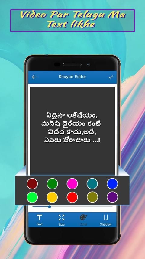 Video mengatakan banyak dan menambahkan nama Anda atau Telugu Shayari pada video itu membuatnya lebih unik. Anda dapat menambahkan teks pada video dengan bantuan aplikasi ini. Anda dapat menghias video Anda dengan stiker, warna, font, dll.