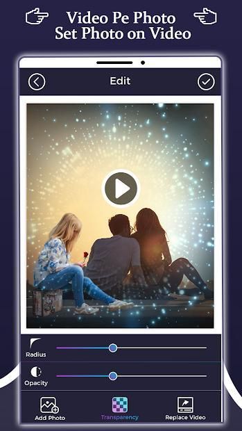Video Pe Photo - Mengatur Foto pada Video aplikasi yang memungkinkan pengguna untuk menambahkan gambar mereka ke dalam satu video dengan klik sederhana dan dengan itu Anda dapat membuat video gambar sendiri menjadi satu klik. Dengan aplikasi ini Anda dapat mengubah video apa pun dengan menerapkan gambar Anda dan daripada menyimpannya dengan klik kanan. Video ini dapat Anda simpan dan bagikan dengan frineds Anda di sisi sosial sebagai status video.