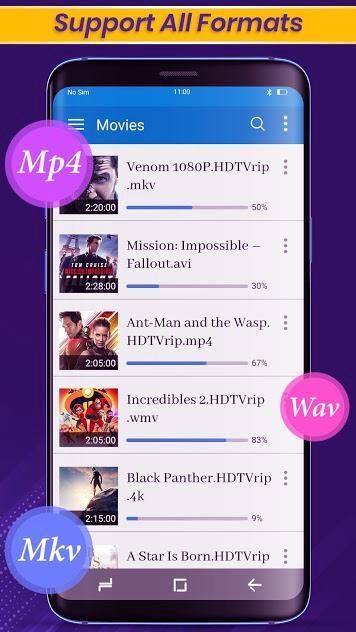 All Format Video Player Play all format video, including MKV, MP4, M4V, AVI, MOV, 3GP, FLV, WMV, RMVB, TS etc.