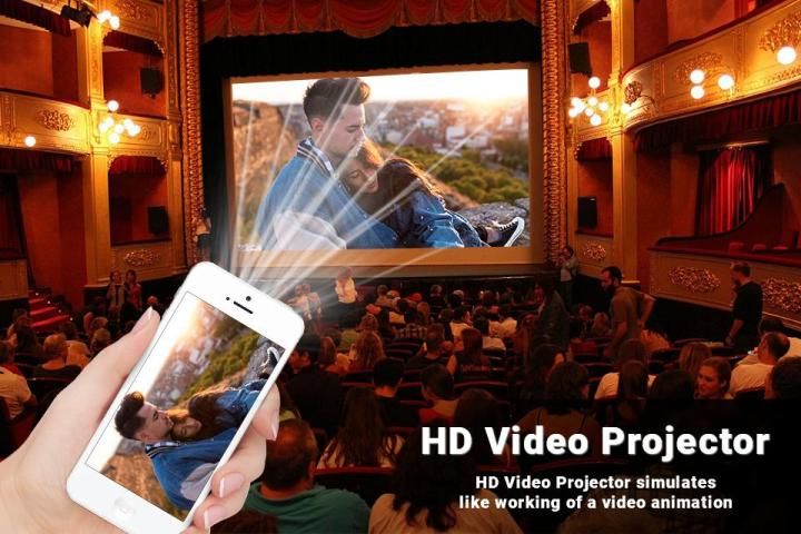 Langsung HD Video Projector Simulator aplikasi ini sangat mudah digunakan, Anda dapat memilih video yang berbeda dan proyek di dinding layar ponsel menggunakan opsi video.