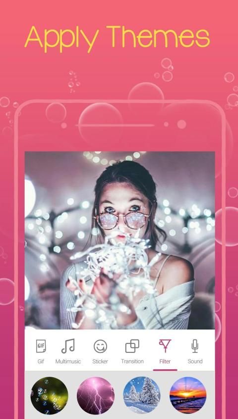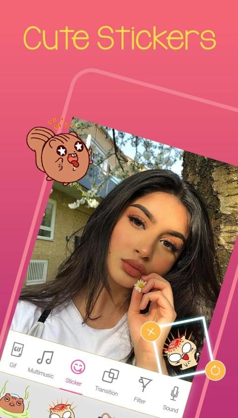 Ada berbagai tema GIF, emoji, gif meme, galeri stiker besar yang kreatif. Sementara itu, pengenalan wajah, stiker gerak, dan efek wajah langsung kami seperti kelinci, kucing, dan mata anak anjing membuat Anda terlihat fantastis dalam setiap video atau tampilan slide. Opsi FX dan stiker animasi juga menyenangkan. Pertunjukan Slide Dengan Musik memudahkan pengguna untuk membuat dan mengedit video dan pertunjukan slide.