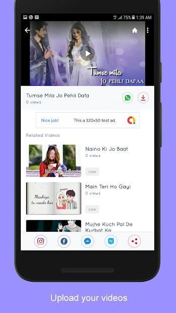 Video Status also supports for video fans. You can also download and share your favorite video songs for WhatsApp, Facebook, Instagram, and Twitter.