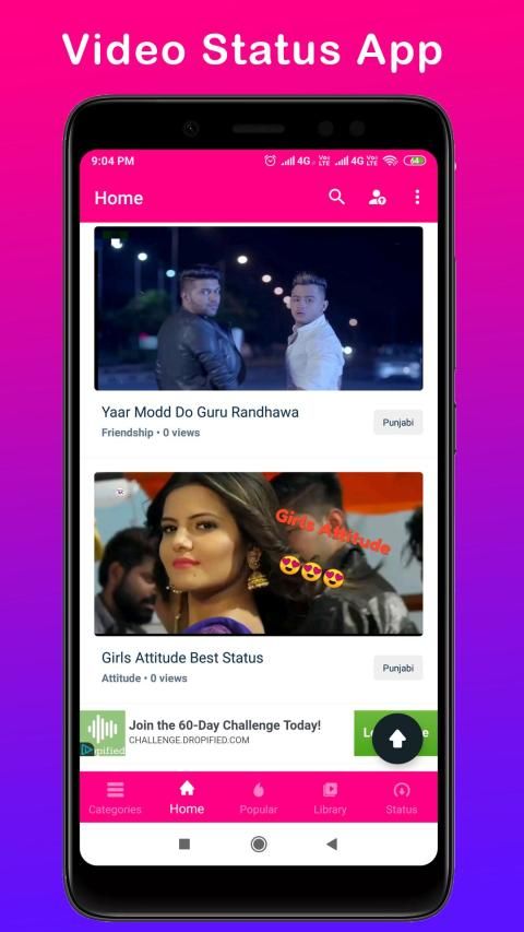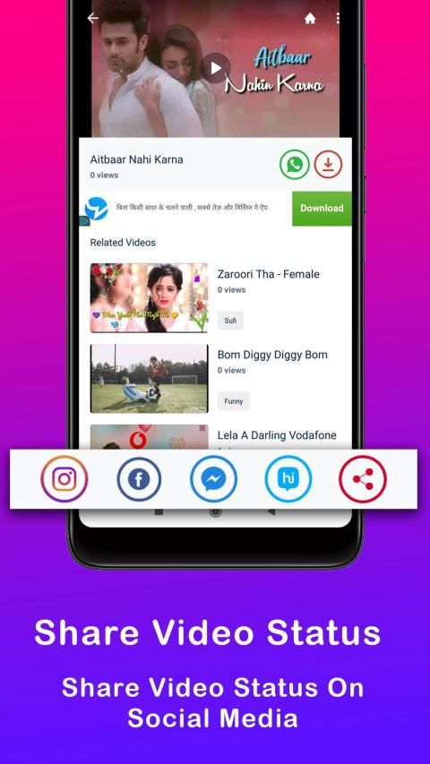 Video Status 2019 is the best free short video Status app to watch, download, and share trending videos & popular videos for whatsapp Videos and other social media. In Video Status 2019, Lyrical video songs status, You can watch and Download Video Status in 9 Indian languages like Hindi, English, Haryanvi, Bhojpuri,Tamil, Marathi, Gujarati, Bengali and Punjabi.