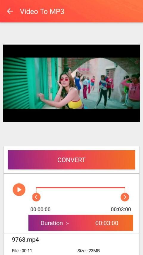 Video to MP3 Converter converts your videos to mp3 audio and save to your phone. You can extracts audio from video files using this Video to MP3 Converter.