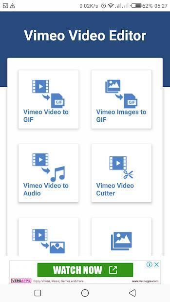 Converts Vimeo Video to GIF by taking video from camera or gallery