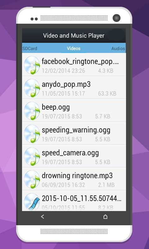 - Pencarian otomatis untuk semua video dan file musik ponsel