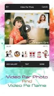 Video pe name likhe is a unique app where you can directly type in Hindi using inbuilt Hindi keyboard provided within the application itself. You don't need any external Hindi Keyboard to use this app. Photo Pe Naam Likhna app allow you add romantic Hindi text and hindi poetry on your gallery photos or on given rich collection of HD and stylish Background.