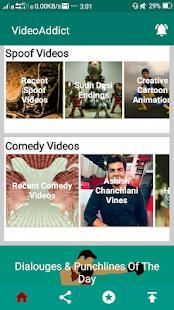 VideoAddict adalah 'One Stop Shop untuk menonton trailer film, video yang spoof dari sudh desi berakhir, tabung spoof dan penciptaan kartun yang kreatif. Ada banyak lebih menyenangkan dari Treding dan video terkemuka dari Bb tanaman merambat ki, Amit bhadana, Ashish chanclani, MJO, 2 asing di bollywood, Beniwal Harsh, Total layar patti semua dalam satu tempat. Jika Anda ingin terlibat dalam atas video yang viewer, aplikasi ini akan menjadi pilihan yang tepat untuk Anda.