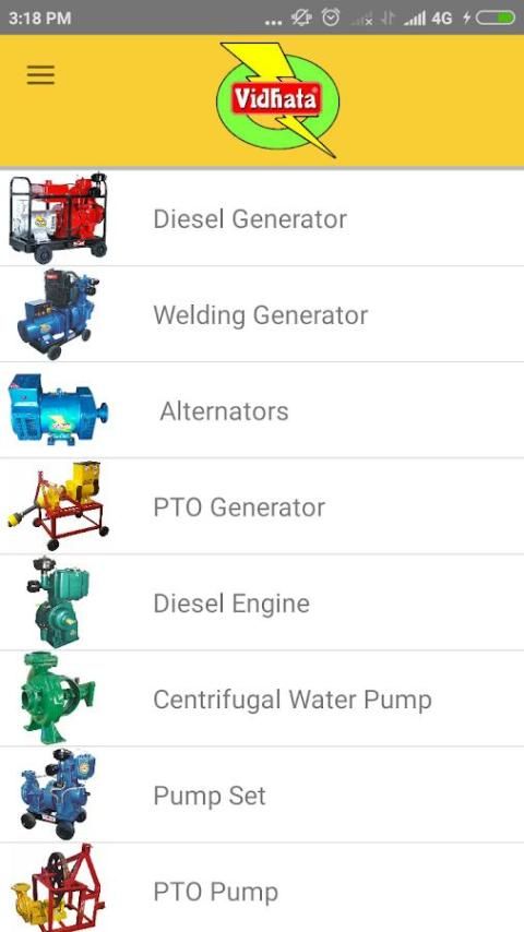 Aplikasi Ponsel menampilkan berbagai macam produk dari kelompok Vidhata. Kelompok Vidhata adalah sangat terkenal dan kelompok terkemuka terlibat dalam Manufaktur dan Pengekspor mesin Diesel, Generator, Pumpsets, alternator, P.T.O. Pompa, P.T.O. Generator, Welding set dan produk pertanian lainnya di bawah nama merek VIDHATA.