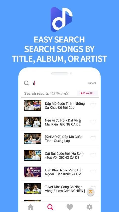 In this application, you can listen to the best Vietnamese bolero music, overseas bolero music (nhạc vàng hải ngoại), lyrical music (nhạc trữ tình), wedding music (nhạc đám cưới), love songs (nhạc trữ tình), and nonstop music, sung and performed by the most famous artists like: Trường Vũ, Tuấn Vũ, Cao Hoàng Nghi, Lệ Quyên, Mạnh Đình, Chế Linh, among many more. Plus, you can create your own playlist of your favorite Vietnamese bolero songs. Download Vietnamese Bolero Music right now and enjoy the best Vietnamese bolero music of all time!