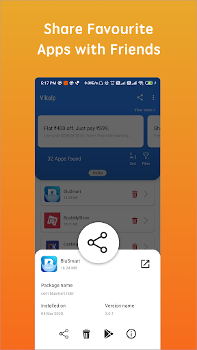 Dapatkan kontrol lebih dari aplikasi Anda. Luncurkan dengan cepat, kunjungi halaman Play Store mereka atau pergi ke pengaturan aplikasi hampir secara instan. Bersenang-senang bersama dengan berbagi aplikasi dan permainan favorit Anda dengan teman-teman Anda melalui Vikalp.