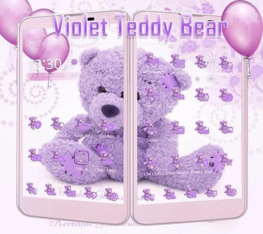 We design violet teddy theme with purple bear icon pack for every app on your android screen. The violet teddy bear skin has cute toy bear live wallpaper and purple balloon decoration. If you love teddy bear and miss teddy hug , get this teddy bear theme and get warm cuddle now .