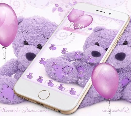 ungu teddy bear tema untuk mengunci layar untuk anak perempuan yang suka lucu mainan beruang
