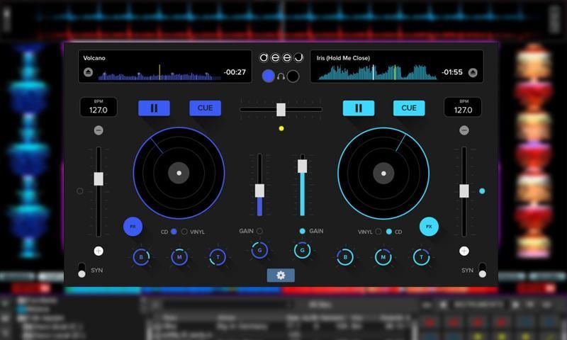 aplikasi virtual DJ didukung dengan efek suara baru, turntable virtual dan nonstop musik.