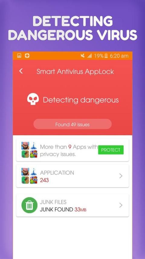 Keamanan Antivirus memiliki Aman dan Aman AppLocker untuk melindungi aplikasi dengan pola desain Anda sendiri lock.Keep privasi Anda dengan mengunci aplikasi seperti WhatsApp, Facebook, Gallery atau apa pun yang Anda inginkan.