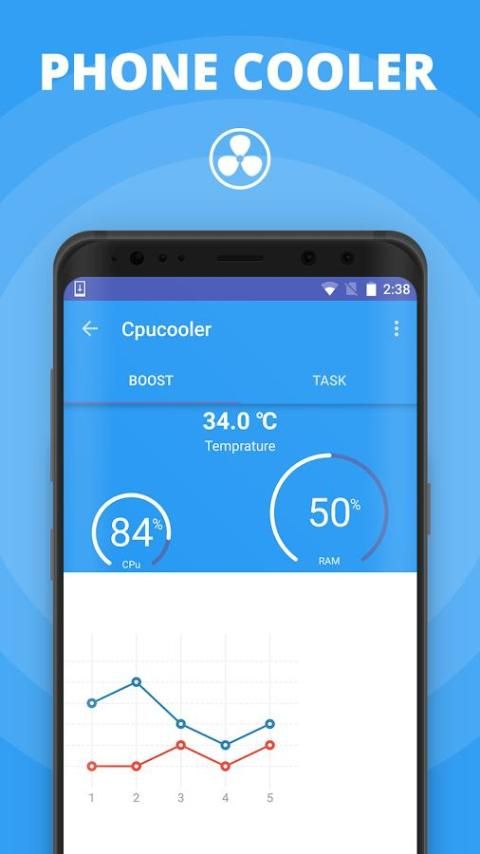 CPU Cooler - Mengoptimalkan penggunaan CPU dan menghentikan overheating aplikasi untuk mendinginkan suhu CPU.
