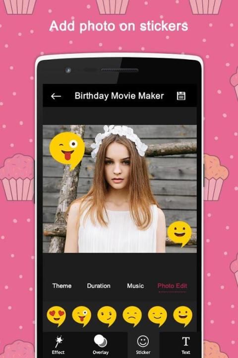 2 - Pilih efek visual, menambahkan musik favorit Anda, menambahkan stiker, mengedit, pemutaran dan menyimpan.