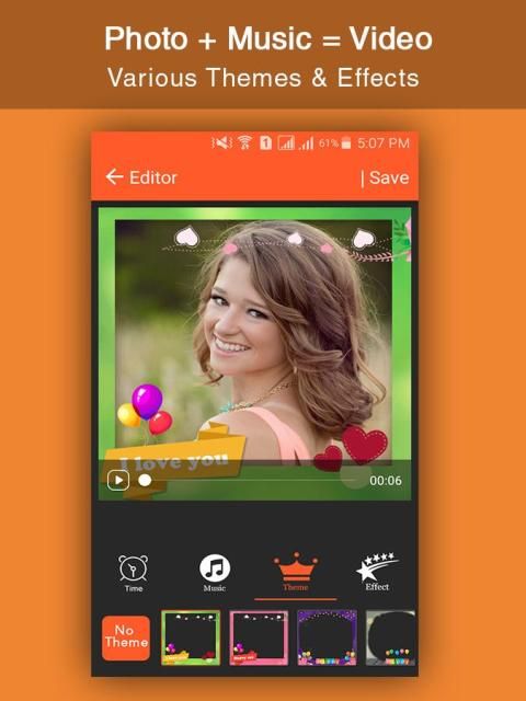 Video foto musik app sangat kuat, sehingga Anda dapat foto video make yang indah dari foto atau video kecil, mengedit rincian individu dalam video, menambahkan musik yang tersedia untuk video atau menambahkan efek lain yang menarik.