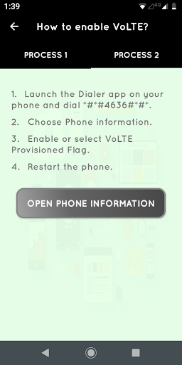 This app will check VoLTE status of your phone which is required to make and recieve calls for VoLTE network provider.