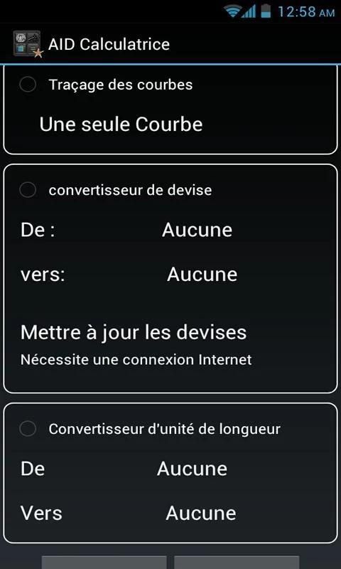 AID Calc mendukung bahasa Inggris, Perancis dan Jerman