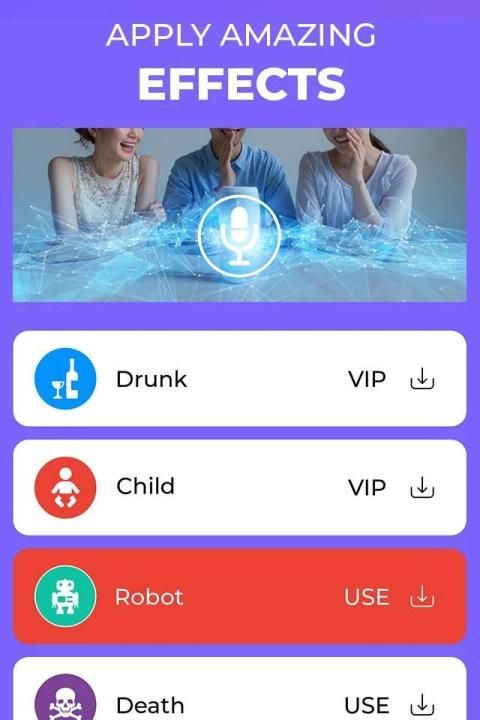 Aplikasi Pengubah Suara mendukung banyak efek: