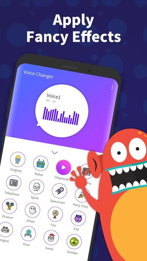 This best voice changer offers multi-effect in one app. You can recording your own voice, save the original voice and also can change into different voice effects.