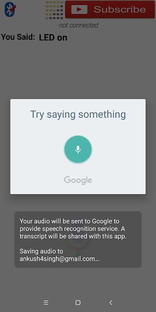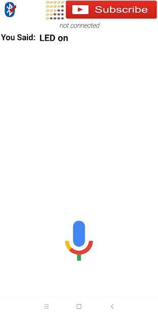klik pada tombol mic dan kirim perintah suara ke arduino Anda melalui bluetooth.