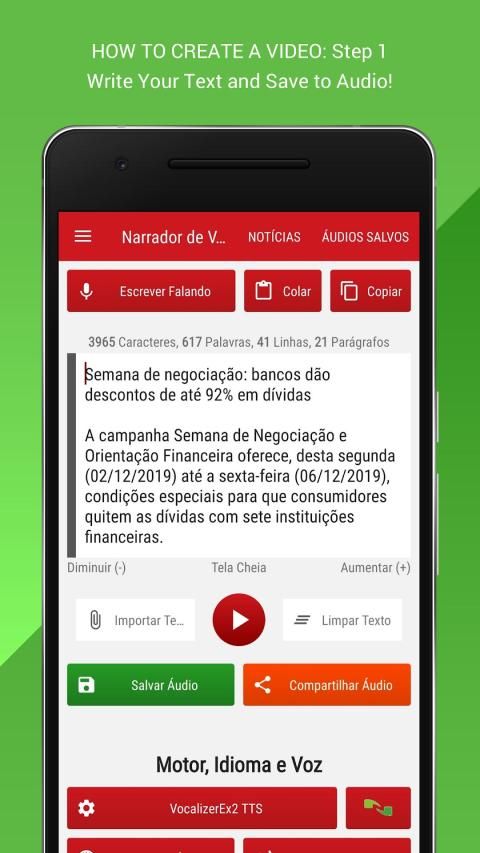 - Voice Narrator for Youtuber, if you are Youtuber and want more access, use our totally free app, it does all the work in just 1 app, it turns your text into audio and then converts audio into video with the image you have. If you want, without a watermark, the generated video can also be published on Facebook, Instagram, Twitter or wherever you want, all for free, we will not charge you anything, and the advertising that is in the app does not hinder your creation of videos and audios.