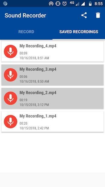Share multiple voice and music recording files from application other social media.