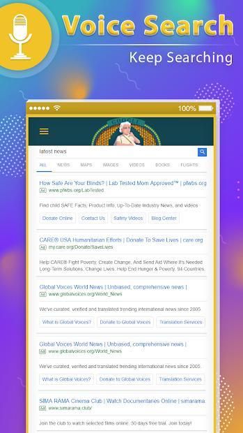 - Quick voice search on Google, YouTube, Bing, Wikipedia, Google Play and many others