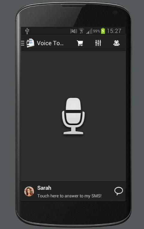 Suara Untuk SMS adalah aplikasi yang memungkinkan Anda untuk mengirim dan merespon pesan singkat dengan menggunakan suara dalam beberapa "klik".