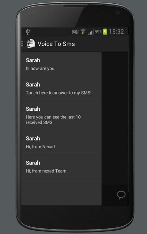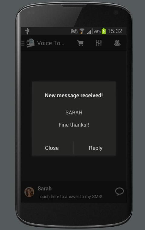 Voice SMS sangat cocok untuk digunakan dalam mobil, ketika Anda tidak memiliki tangan yang tersedia atau ketika Anda draiving. hanya mendikte nama penerima, teks sms dan aplikasi secara otomatis akan mengirim pesan.
