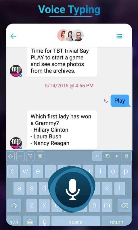 Anda dapat menggunakan aplikasi ini dan mengirim, berbagi teks dan esai panjang di media sosial lain dan banyak aplikasi perpesanan seperti Watsapp, Viber, Skype, dll. Pengetikan suara Mendukung lebih dari 80 bahasa yang berbeda termasuk bahasa Arab Perancis Spanyol.