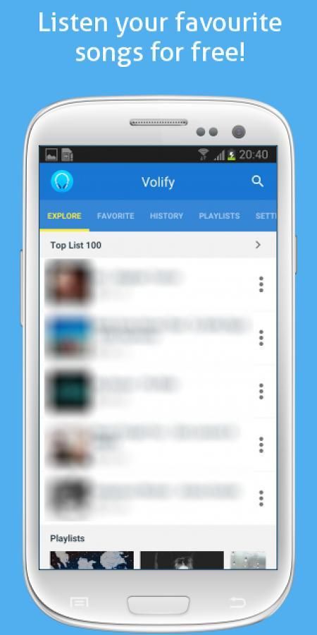 Volify membantu Anda untuk dengan mudah mencari Anda lagu favorit, artis, DJ, bermain mereka dengan tekan. Anda dapat dengan mudah membuat playlist dan menempatkan lagu tak terbatas untuk mode Anda. Bermain dan terus membaca buku, berselancar di internet dll ..