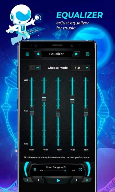 Apa yang mengatur Volume Booster Black Edition dari aplikasi serupa lainnya adalah bahwa ketika pengguna mengaktifkan peningkatan aplikasi ini tidak hanya memperkuat suara sampai akhir, tetapi juga menggunakan equalizer Android bawaan untuk mengoptimalkan saluran frekuensi dengan menggunakan algoritma khusus.