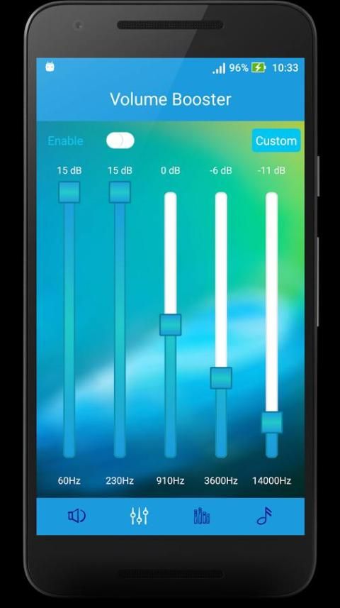penguat musik memungkinkan Anda untuk menyesuaikan trek suara Anda dengan equalizer lima-band. Ada 10 profesional genre musik preset untuk pilihan Anda; mereka Hip-hop, Rock, Dance, Pop, Latin, Logam, Klasik, datar, Normal, dan Custom.
